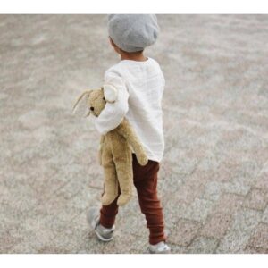 The large cuddly toy rabbit is not only perfect as a gift for little cuddle lovers, but also a great companion in any situation. Whether as a classic plush toy or as a beautiful decoration – with its natural coloring, it perfectly adapts to any environment. All materials are GOTS certified and the animals are hand-sewn in Europe, so they last a lifetime! Age group: 0M+ Country of origin: Latvia Fabric: Cotton plush, sheep's wool