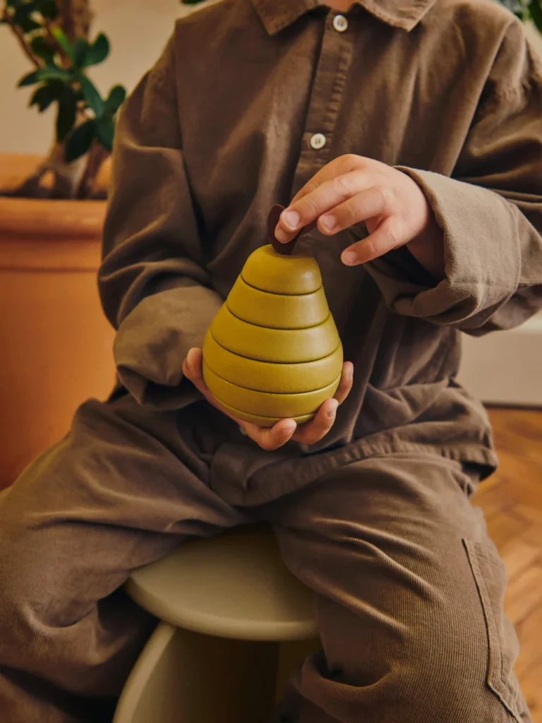 Encourage everyday play with the Stacking Apple and Pear toy set. Made from FSC™-certified solid beech wood, the set includes two playful stacking fruits with interchangeable slices that can be mixed and rearranged. Designed to inspire creativity and open-ended play, the bold, graphic shapes bring a cheerful touch to any child’s room.
